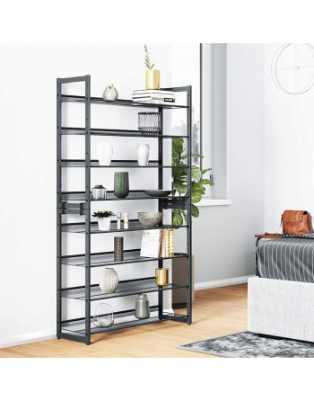 Το stand αποθήκευσης παπουτσιών, από την εταιρία Songmics, θα σας βοηθήσει να έχετε πάντα τακτοποιημένα και καθαρά τα παπούτσια σας. Διαθέτει 8 ράφια, υψηλής ποιότητας, με βάση σε μορφή μεταλλικού πλέγματος για τον επαρκή αερισμό των παπουτσιών σας. Τα ράφια είναι ρυθμιζόμενα και μπορούν να είναι σε κεκλιμένη ή επίπεδη μορφή, ανάλογα με το είδος των παπουτσιών που θέλετε να τοποθετήσετε. Οι σωλήνες έχουν λεία επιφάνεια και είναι ανθεκτικοί στη διάβρωση και στη φθορά. Εύκολο στη φροντίδα, απλά το καθαρίζετε με ένα υγρό πανί.