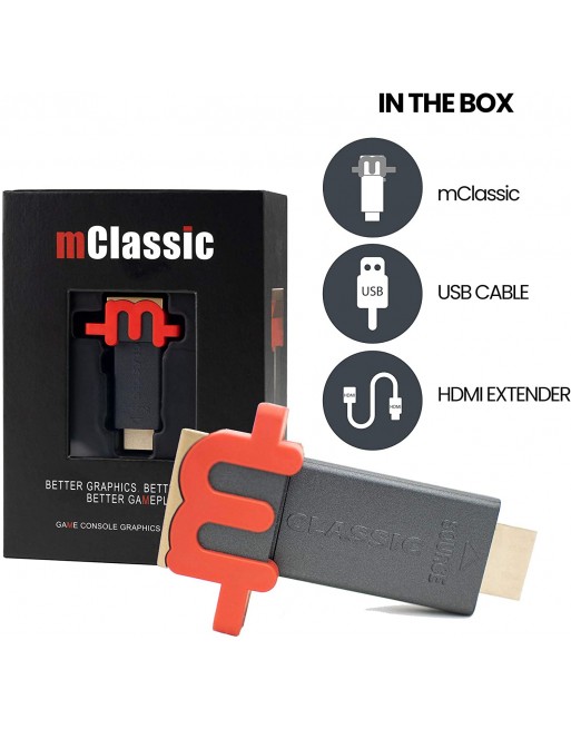 Includes mClassic, Micro-USB cable and HDMI extension cable.