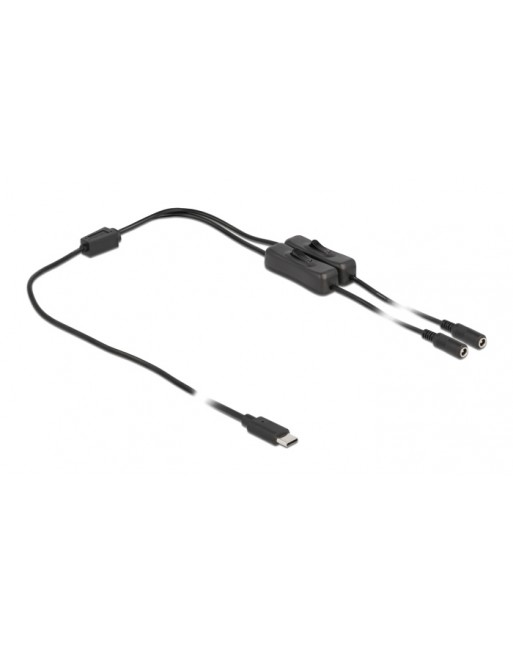 DELOCK καλώδιο USB Type-C σε 2x DC 5.5 x 2.1mm 86800, 1m, μαύρο