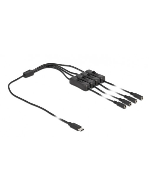 DELOCK καλώδιο USB Type-C σε 4x DC 5.5 x 2.1mm 86802, 1m, μαύρο