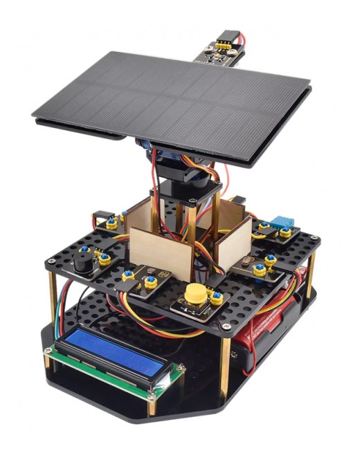 -Novel style: adopt acrylic boards and copper pillars;sensors or modules connected to acrylic boards via Lego jacks; LCD 1602 modules and solar panels add technologies to it