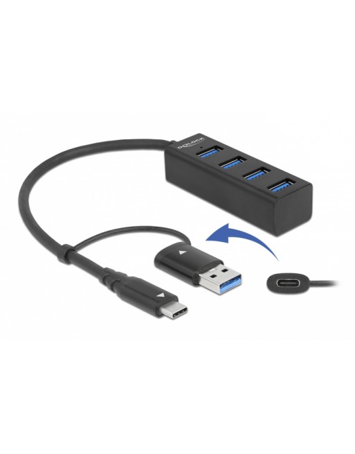 Το USB hub της Delock μπορεί να συνδεθεί με τον υπολογιστή σας μέσω θύρας USB ή USB Type-C και να επεκτείνει τις θύρες του με 4x USB 3.2 θύρες.