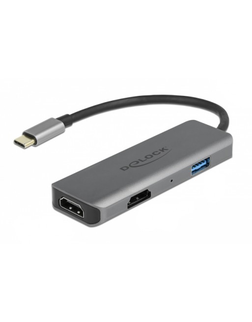 DELOCK αντάπτορας USB Type-C σε USB & 2x HDMI 87780, 480Mbps, 4K, γκρι