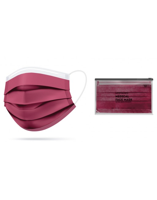 VESTAMED χειρουργική μάσκα 3 στρωμάτων VMM40, BFE >98% 5x 10τμχ μπορντό