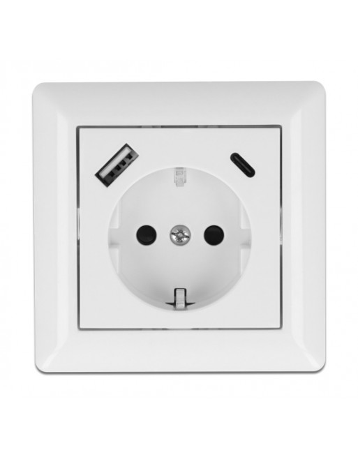 DELOCK πρίζα τοίχου 11489 με θύρες φόρτισης USB & USB Type-C 3.4A, λεύκη