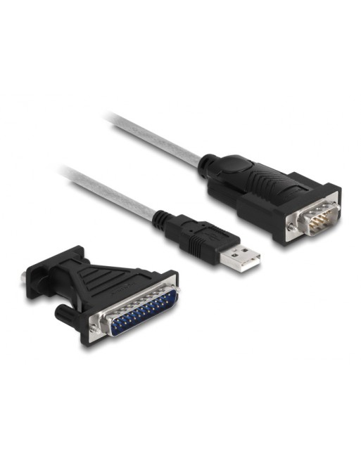 DELOCK καλώδιο USB σε RS-232 DB9 61314 με αντάπτορα DB25, 1.8m, μαύρο