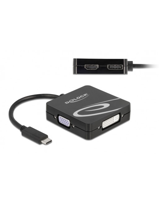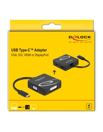 DELOCK αντάπτορας Type-C σε VGA/DVI/HDMI/DisplayPort 63129, 4K, μαύρος