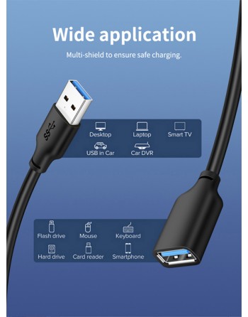 CABLETIME καλώδιο USB 3.0 αρσενικό σε θηλυκό C160, 5Gbps, 2m, μαύρο