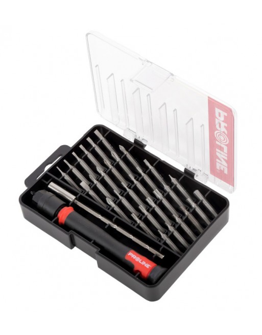 Σετ κατσαβιδιών ακριβείας της Proline το οποίο αποτελείται από κατσαβίδι με επέκταση (4.0 x 90mm) και 30 διαφορετικές κεφαλές κατσαβιδιού.