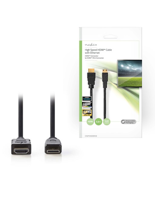 Καλώδιο High speed HDMI with Ethernet, HDMI mini αρσ. - HDMI αρσ. με επίχρυσες επαφές, 5.00m.