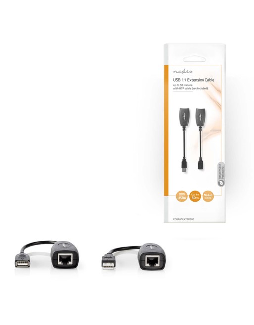 Καλώδιο προέκτασης USB 2.0 A αρσ. - USB 2.0 A θηλ. μέσω καλωδίου UTP, έως 50m.