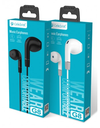 CELEBRAT earphones με μικρόφωνο G8, 3.5mm, 1.2m, λευκά