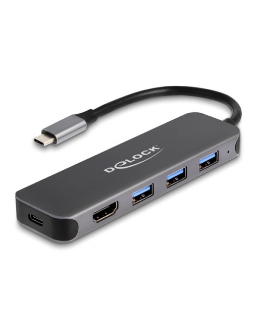 DELOCK USB-C hub, 3x USB 5Gbps, HDMI 4K, USB-C PD 85W, γκρι