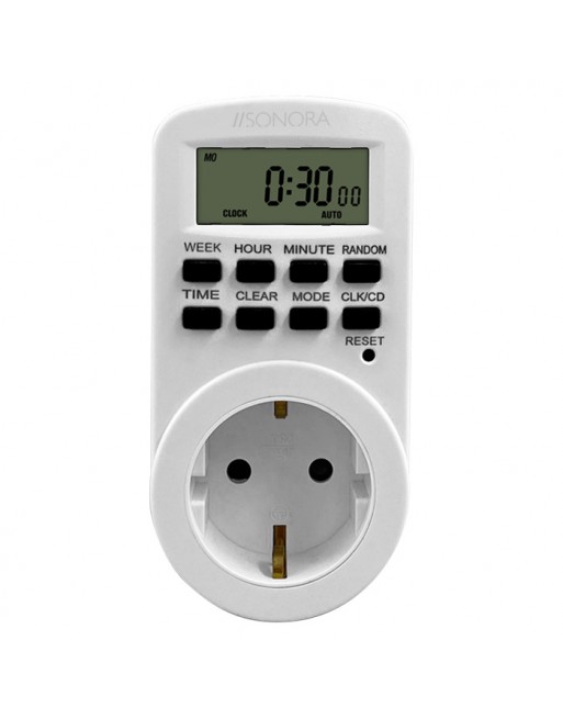 Ο ψηφιακός χρονοδιακόπτης SONORA DTM-01 διαθέτει οθόνη με ευανάγνωστα ψηφία και δυνατότητα χρονοπρογραμματισμού με 16 προγράμματα ON/OFF. Ο ελάχιστος χρόνος ρύθμισης του 1 λεπτού, σας δίνει απεριόριστες δυνατότητες για να ρυθμίσετε την ενεργοποίηση και απενεργοποίηση της συνδεδεμένης συσκευής. Μπορείτε να εφαρμόσετε προγράμματα σε ημερήσια ή και εβδομαδιαία βάση. Τέλος διαθέτει και πρόγραμμα τυχαίας ενεργοποίησης/απενεργοποίησης της συνδεδεμένης συσκευής, που βοηθάει στο να μην υπάρχει ένα συγκεκριμένο μοτίβο ON/OFF της συσκευής τις απογευματινές και βραδινές ώρες (από 18.00 έως 06.00), έτσι ώστε τίποτα να μην μαρτυράει την ενδεχόμενη απουσία σας από τον χώρο.