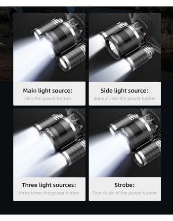 Modes: 4 modes (Main light/auxiliary ligh/three lights/strobe)