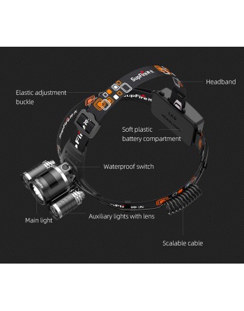 SUPFIRE φακός κεφαλής HL33, 16W, 700lm, 200m, 2x 2000mAh