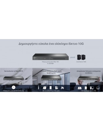 Το JetStream L2+ managed switch της TP-LINK είναι η ιδανική επιλογή για να επεκτείνετε τις θύρες δικτύου, σε μεγάλα επαγγελματικά δίκτυα, με 8x 10Gbps SFP+ θύρες.