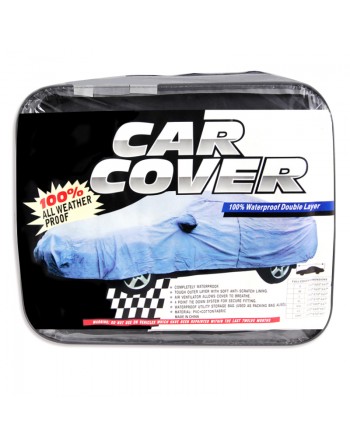 ΠΡΟΣΩΡΙΝΗ ΕΛΛΕΙΨΗ 3.82m X 1.63m X 1.20m • Ραφτή & Θερμοκολλημένη • Επένδυση από βαμβάκι • Με ειδικούς ιμάντες πρόσδεσης • Με θήκες για τους καθρέφτες • Άνοιγμα φερμουάρ στη πόρτα του οδηγού • Προστασία ενάντια στον ήλιο, βροχή, σκόνη, πάγο.