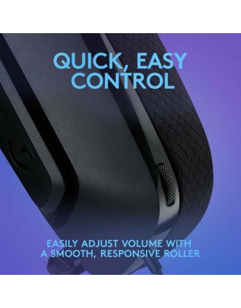 Μπείτε εύκολα στο παιχνίδι χρησιμοποιώντας μια απλή υποδοχή ήχου 3,5 mm. Το G335 λειτουργεί με Xbox®, PlayStation®, Nintendo Switch™ καθώς και με τους περισσότερους υπολογιστές, φορητούς υπολογιστές ή φορητές συσκευές. Το μαλακό ελαστικό headband προσαρμόζεται στο κεφάλι σας και μπορεί να προσαρμοστεί για τέλεια εφαρμογή. Σύρετε τα ακουστικά πάνω-κάτω για να τα αισθάνεστε σωστά. Χρησιμοποιήστε τον κύλινδρο έντασης στο ακουστικό για να ενεργοποιήσετε το παιχνίδι ή τη μουσική σας. Ανασηκώστε το μικρόφωνο για άμεση σίγαση και απομακρύνετέ το.