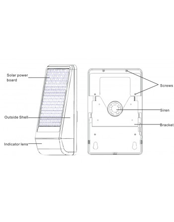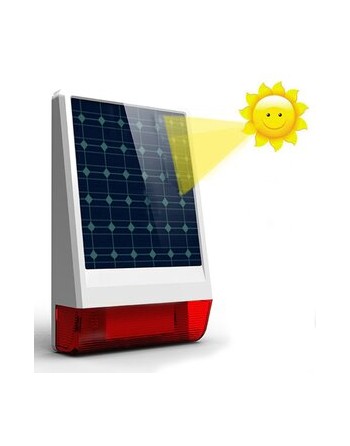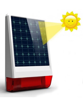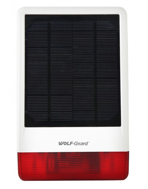 Ασύρματη ηλιακή σειρήνα εξωτερικού χώρου της Wolf Guard με ηχητικό και οπτικό συναγερμό. Έχει αδιάβροχο σχεδιασμό και υποστηρίζει έως και 100 ασύρματους αισθητήρες. Διαθέτει ενσωματωμένη μπαταρία λιθίου 3,7V 2300mAh, επαναφορτιζόμενη με ηλιακή ενέργεια, η όποια λόγο της εξαιρετικά χαμηλής κατανάλωσης μπορεί να λειτουργήσει για μεγάλο χρονικό διάστημα.