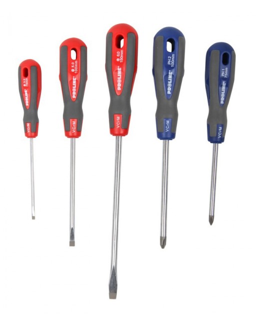 Σετ κατσαβιδιών από την Proline που αποτελείται από 3 ίσια κατσαβίδια και 2 σταυρωτά.