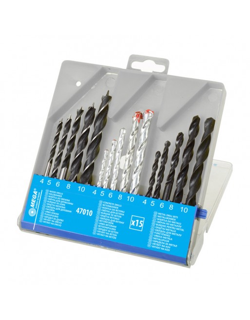 MEGA σετ τρυπάνια 47010 για σίδηρο/ξύλο/μπετόν, 4-10mm, 15τμχ