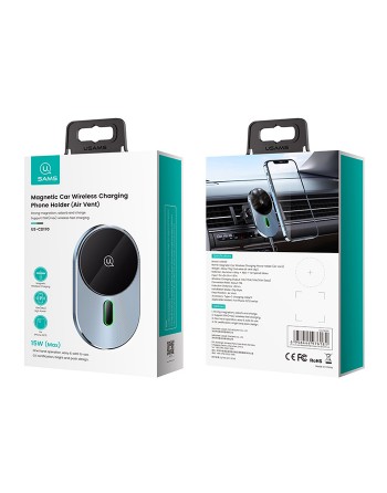 Ασύρματος φορτιστής και βάση με στήριξη στους αεραγωγούς του αυτοκινήτου της Usams. Η ισχυρή μαγνητική δύναμη κρατάει το smartphone σταθερό και ασφαλές ενώ παράλληλα το φορτίζει ασύρματα με απόδοση έως 15W.