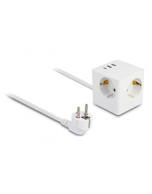 DELOCK πολύπριζο 11497, 3x schuko, USB-C & 2x USB, 16A, 1.5m, λευκό