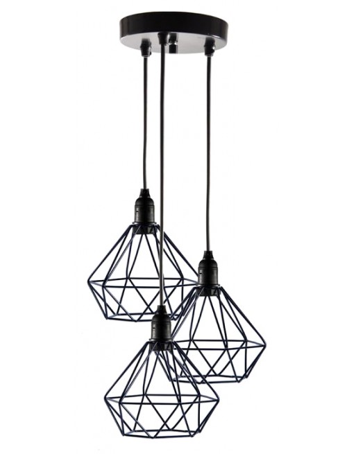 Τρίφωτο κρεμαστό φωτιστικό οροφής σε σχήμα διαμαντιού με προσεγμένο φινίρισμα που θα προσφέρει στον χώρο σας έναν όμορφο τόνο. Το καλαίσθητο σχέδιο του, σε συνδυασμό με το μαύρο του χρώμα του προσδίδει συμβατότητα σε κάθε χώρο, ταιριάζοντας αρμονικά είτε σε μοντέρνο είτε σε πιο παραδοσιακό περιβάλλον. Είναι κατασκευασμένο από μέταλλο και με μεγάλη προσοχή στην λεπτομέρεια, η οποία ολοκληρώνεται από την εξαιρετικής ποιότητας βαφή.