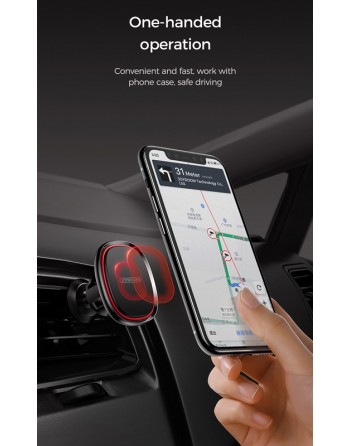 Βάση smartphone με στήριξη στους αεραγωγούς του αυτοκινήτου της Joyroom. Είναι ιδιαίτερα κομψή και λεπτεπίλεπτη και η επιφάνεια της βάσης όπου τοποθετείται η συσκευή έχει μαλακή επίστρωση από σιλικόνη αποτρέποντας τις γρατσουνιές από την χρήση. Η ισχυρή μαγνητική δύναμη της βάσης κρατάει το smartphone σταθερό και ασφαλές χωρίς να επηρεάζει το σήμα της συσκευής ενώ η δέσμευση και αποδέσμευση της γίνεται εύκολα με το ένα χέρι. Διαθέτει 2 μεταλλικές πλάκες που τοποθετούνται στην συσκευή για να την μαγνητίζει και να την συγκρατεί στην βάση. Είναι ιδανική για χρήση σε κάθετους ή οριζόντιους αεραγωγούς.