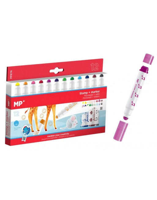 MP σετ χρωματιστών μαρκαδόρων με διπλή μύτη PP876, 4mm & στάμπα, 12τμχ