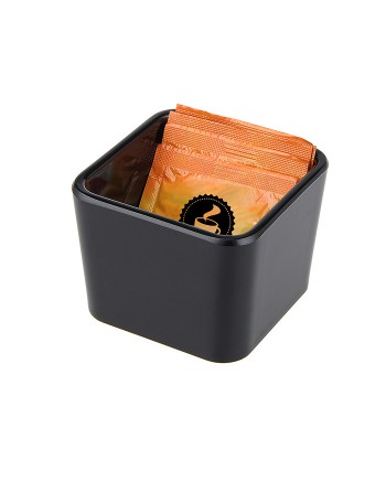 Το σετ αποτελείται από κομψό δίσκο μελαμίνης διαστάσεων 380x280x20mm, με μοντέρνο design από μελαμίνη με μαύρη γυαλιστερή επιφάνεια, μία σταθερή θήκη για φακελάκια ζάχαρης/καφέ και δύο πρακτικές αποσπώμενες θήκες για φακελάκια καφέ / τσάι και κουταλιών.