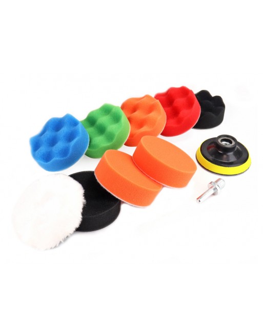 Σετ γυαλίσματος αυτοκινήτου που αποτελείται από 8 σφουγγάρια γυαλίσματος με διαφορετική σκληρότητα και δομή, 1 γούνα γυαλίσματος, 1 κεφαλή και 1 αντάπτορα M14 για δράπανο.