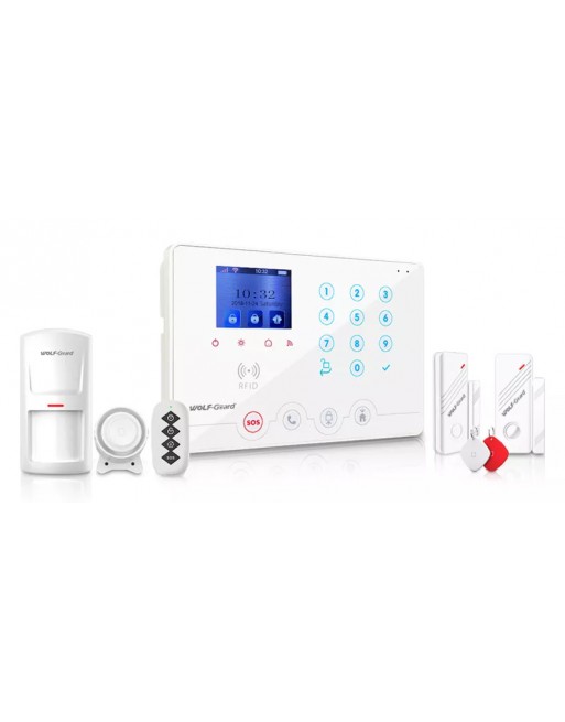 Ασύρματο σύστημα συναγερμού της Wolf Guard, ενσωματωμένο στο TUYA ecosystem. Το σύστημα περιλαμβάνει την κεντρική μονάδα συναγερμού, ασύρματο ανιχνευτή κίνησης PIR, ασύρματο χειριστήριο, 2 ασύρματες μαγνητικές παγίδες παραθύρου/πόρτας, ενσύρματη εξωτερική σειρήνα και 2 RFID Tags. Διαθέτει οθόνη TFT LCD 2,4" και πληκτρολόγιο αφής.