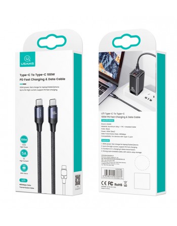 USAMS καλώδιο USB-C US-SJ525, 100W/5A, PD, 2m, μαύρο