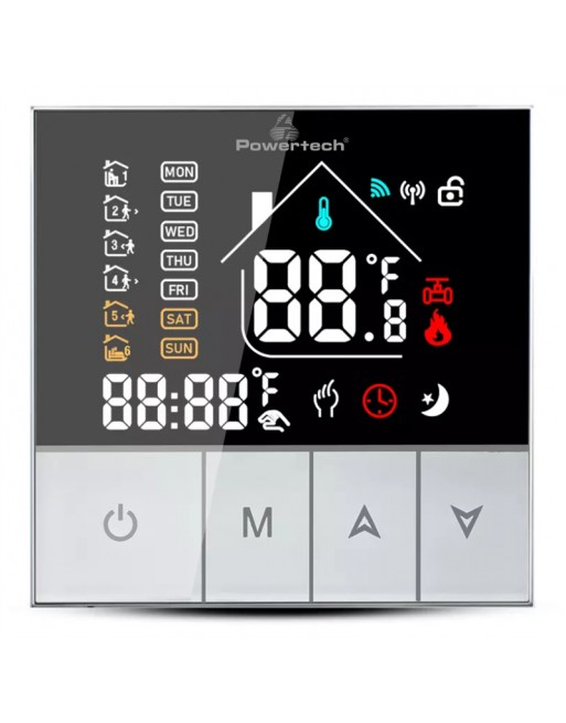 POWERTECH ψηφιακός θερμοστάτης χώρου PT-1051, πετρελαίου, Wi-Fi, μαύρος χωνευτός