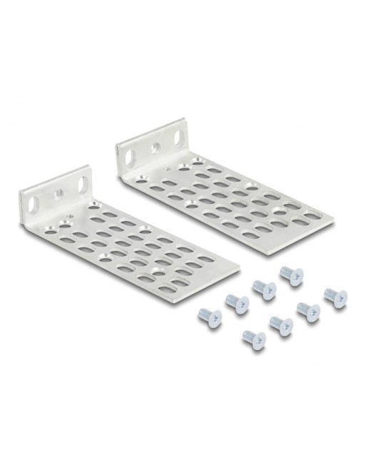 Αυτό το σετ βάσεων τοποθέτησης της Delock μπορεί να χρησιμοποιηθεί για εγκατάσταση διαφόρων συσκευών όπως ένα switch σε 10” ή 19" rack και καμπίνες τοίχου.