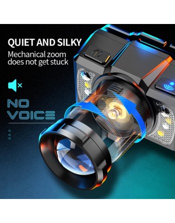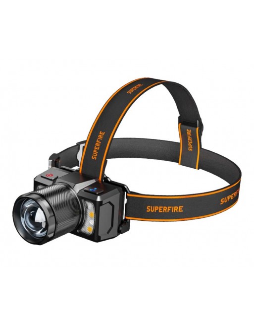 Φακός κεφαλής Supfire με 1 κύριο και 2 βοηθητικά φωτιστικά σώματα. Διαθέτει 8 λειτουργίες φωτισμού και zoom λειτουργία που επιτρέπει τη ρύθμιση του εύρους φωτεινότητας.