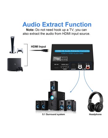 Ο μετατροπέας CAB-H154, επιτρέπει τον διαχωρισμό του ήχου από το HDMI σε 3.5mm & 2x RCA για την σύνδεση σε εξοπλισμό ήχου. Υποστηρίζει ανάλυση 4K, 3D video format, deep color και 8:8:8 chroma colours. Εξοπλίζεται με διακόπτη λειτουργία ARC και διακόπτη επιλογής καναλιού TV, 2.0, 5.1.