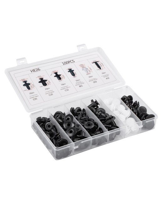 Universal σετ της Amio που αποτελείται από 100 κλιπ ιδανικά για ταπετσαρίες, λασπωτήρες, προφυλακτήρες και πόρτες αυτοκινήτων.