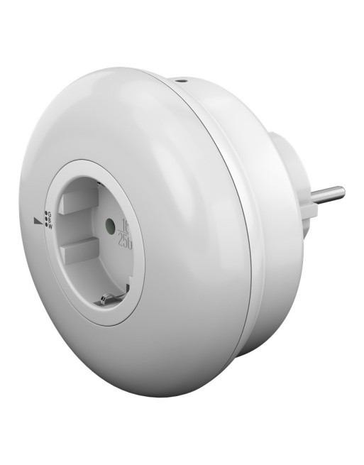 Φωτιστικό νυκτός LED της Goobay με 3 επιλογές χρώματος φωτισμού και passthrough πρίζα schuko για την αξιοποίηση της πρίζας του σπιτιού. Εξοπλίζεται με αισθητήρα φωτός για την αυτόματη ενεργοποίηση του φωτιστικού όταν η φωτεινότητα φτάσει σε επίπεδο κάτω από 21 lx.