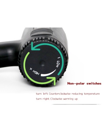 Πιστόλι θερμού αέρα με 2 ταχύτητες, με ρυθμιζόμενη θερμοκρασία 50-400 °C για την χαμηλή ταχύτητα και 50-600 °C για την υψηλή ταχύτητα.