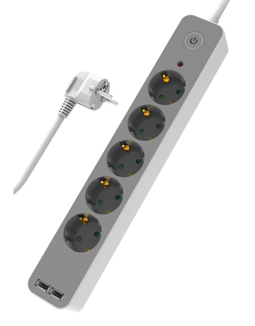 POWERTECH πολύπριζο ασφαλείας PT-1059 5x schuko/2x USB, 16A, 1.4m, λευκό