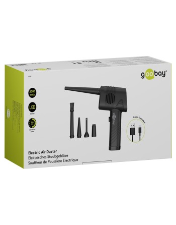 Ηλεκτρικό air duster της Goobay, κατάλληλο για την απομάκρυνση της σκόνης από αξεσουάρ και οικιακά αντικείμενα όπως πληκτρολόγια, PC cases, κλιματιστικά, ηλεκτρονικές συσκευές κ.α.