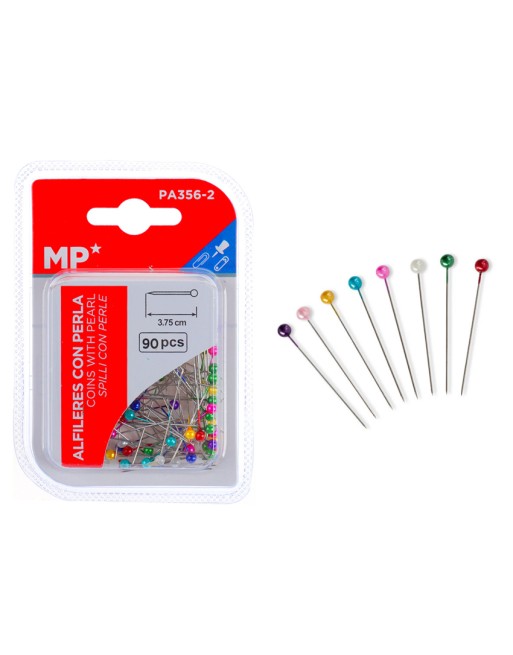 MP πινέζες με κεφάλι PA356-2, μεταλλικές, 3.75cm, πολύχρωμες, 90τμχ