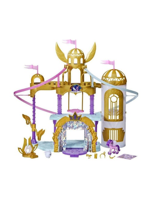 Εμπνευσμένο από το παλάτι Zephyr Heights στην ταινία My Little Pony: A New Generation, αυτό το σετ παιχνιδιού-κάστρο για αγόρια και κορίτσια έχει ύψος 56 εκ. Τοποθετήστε τις φιγούρες πόνυ Princess Petals και ζωάκι Cloudpuff που περιλαμβάνονται στη συσκευασία, στις κορυφές από τις τσουλήθρες. Στη συνέχεια, παρακολουθήστε τις να τσουλούν από τον ψηλότερο πύργο μέχρι τη σκηνή της παράστασης!