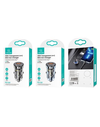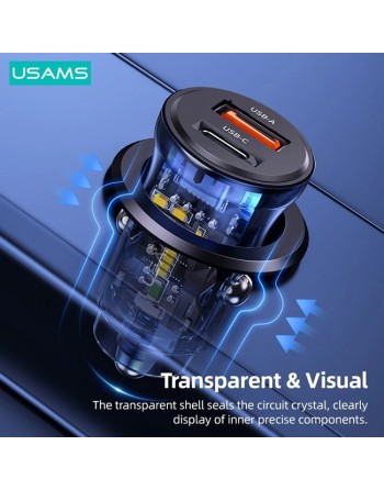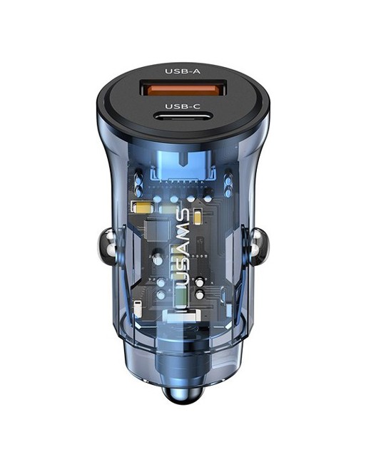 USAMS φορτιστής αυτοκινήτου US-CC164, USB & USB-C, 30W, μπλε