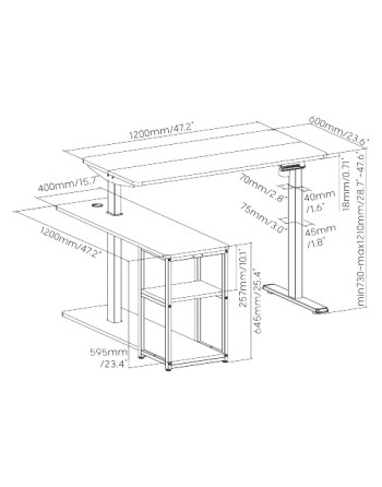 Διαστάσεις επιφάνειας εργασίας: 1200 x 600 x 18mm, 1200 x 400 x 18mm