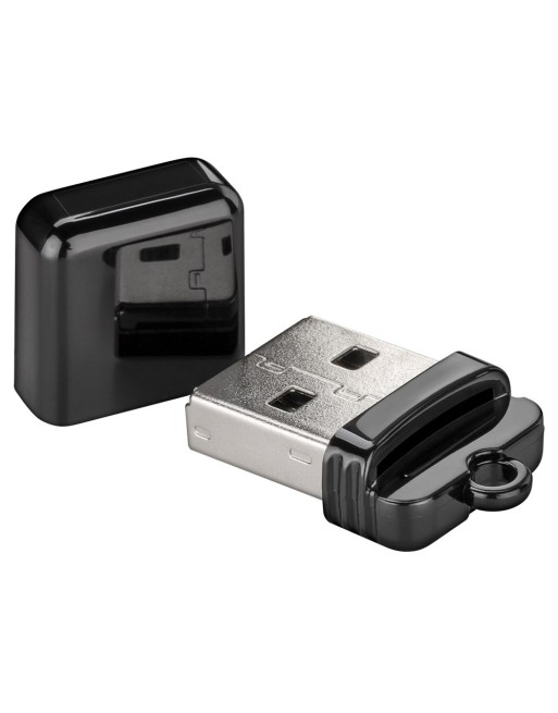 Card reader σε εξαιρετικά μικρό μέγεθος από την Goobay, με υποδοχή στην οποία μπορείτε να τοποθετήσετε μια micro SD κάρτα μνήμης. Συνδέεται απευθείας σε desktop ή laptop μέσω θύρας USB.