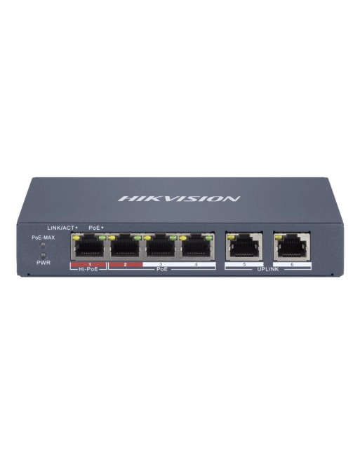 HIKVISION Managed switch DS-3E1106HP-EI, 4x PoE & 2x RJ45 ports, 100Mbps